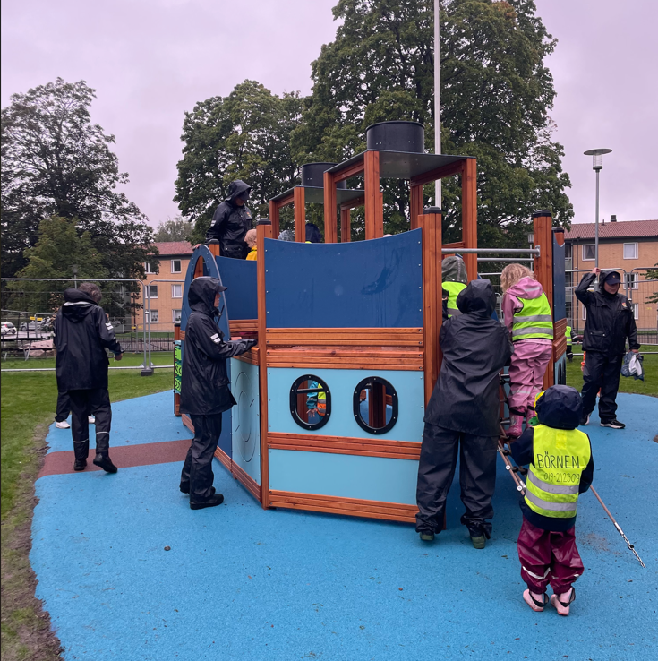 Det började med en dränering – men slutade i jubel. När Länsgården rustade gården vid förskolan Villekulla växte idén om en ny lekplats fram. Nu är den invigd, med ångbåt och allt.
